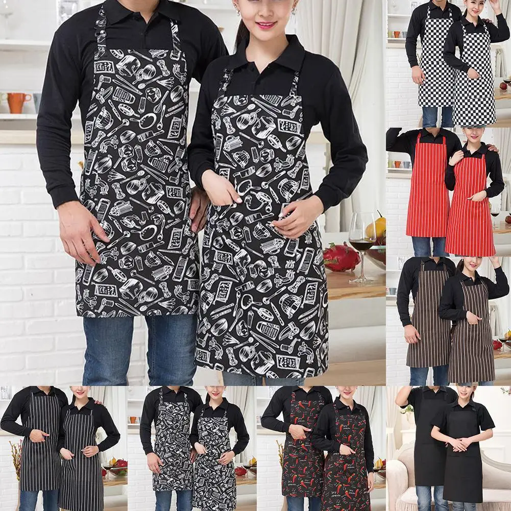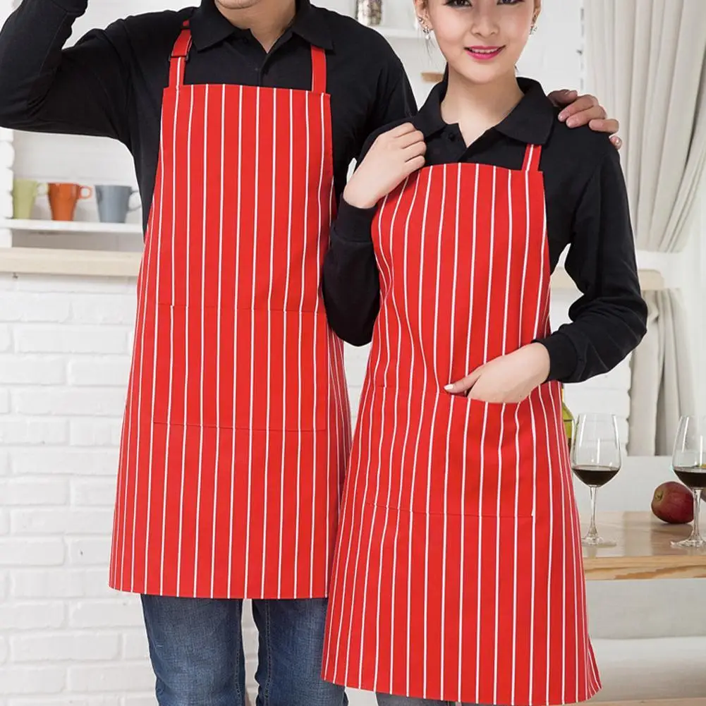 Half-length Adjustable Kitchen Apron Adult Striped Restaurant Hotel Chef Waiter Apron Picnic Cook Apron With 2 Pockets
