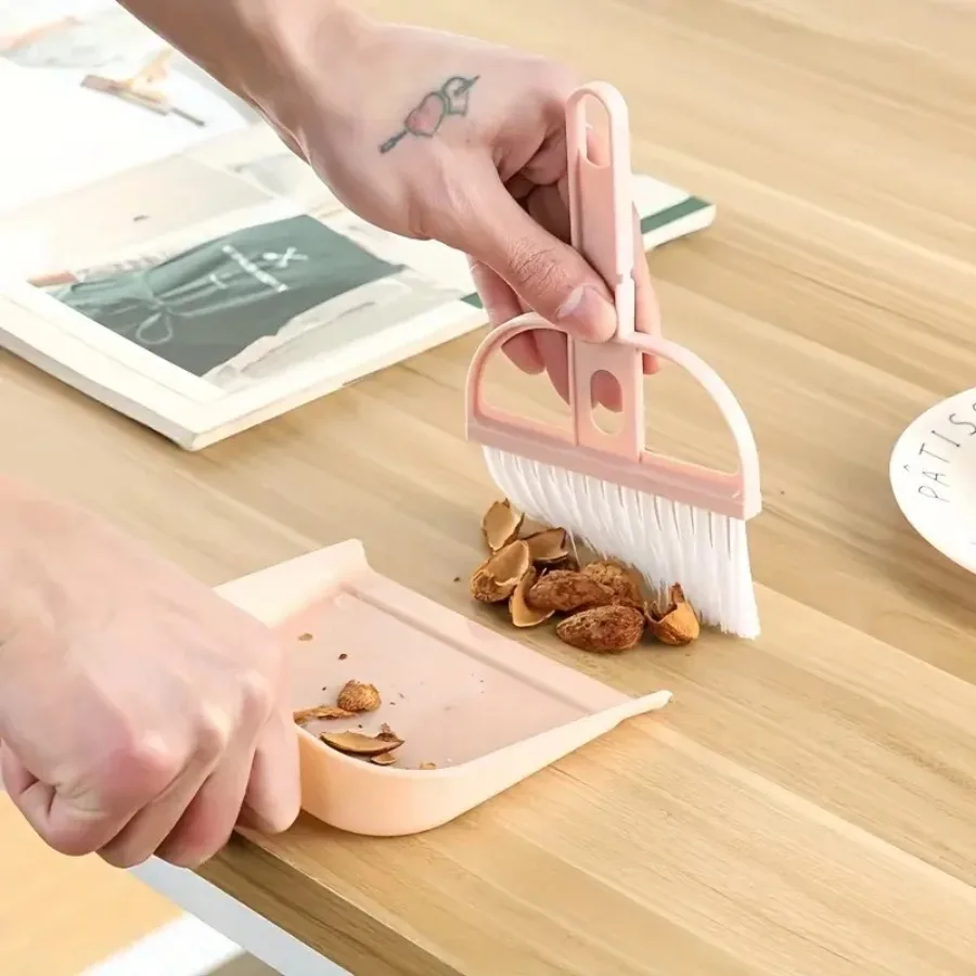 Plastic Mini Broom and Dustpan Set, Desktop Cleaning Brush with Dust Cover for Home & Office, Pink