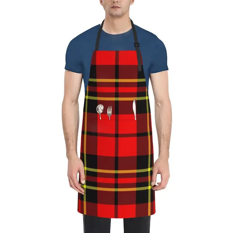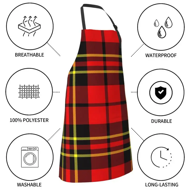 Red Black Tartan Check Scottish Pattern Apron Adjustable Bib Aprons Cooking Chef Apron for Home Kitchen Restaurant Coffee House